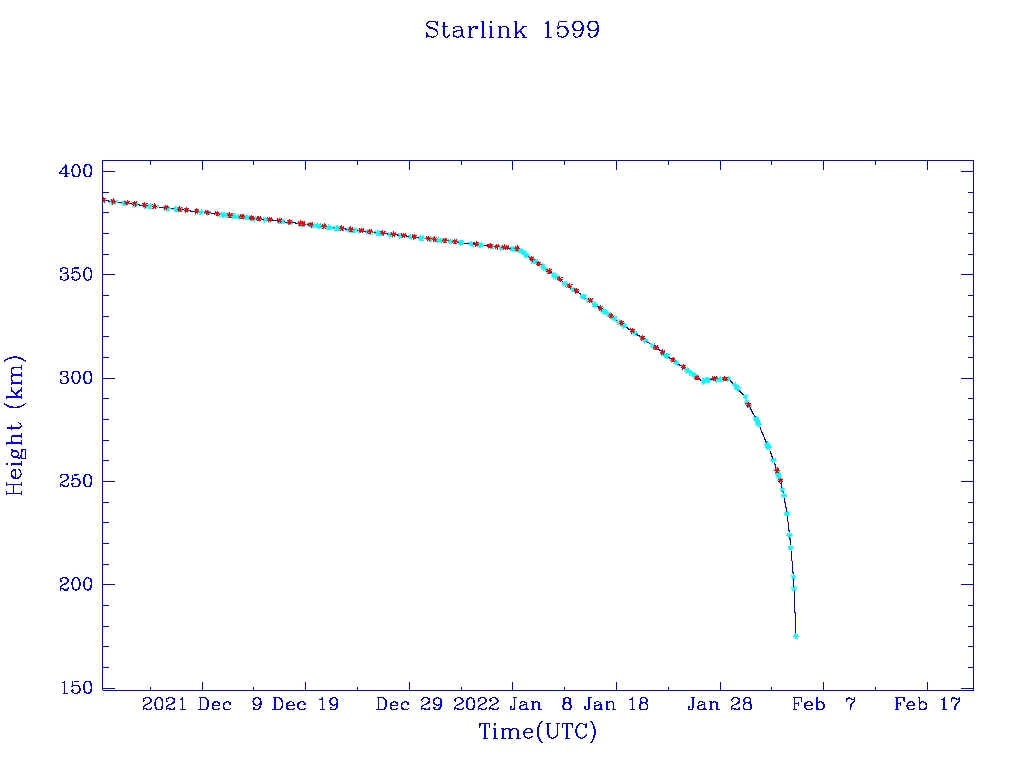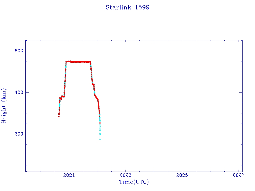 | Starlink 1599 | S46143 | R | 2020 Aug 18 | 2022 Jan 28 | 2022 Feb 4 |  |  |  |
