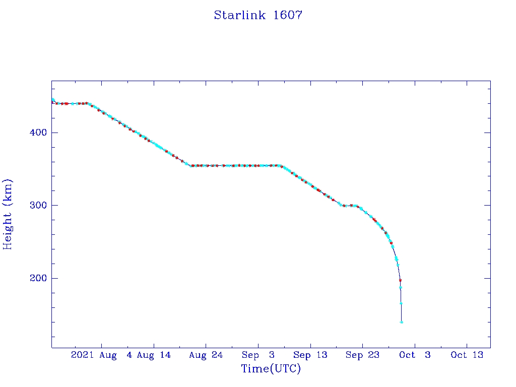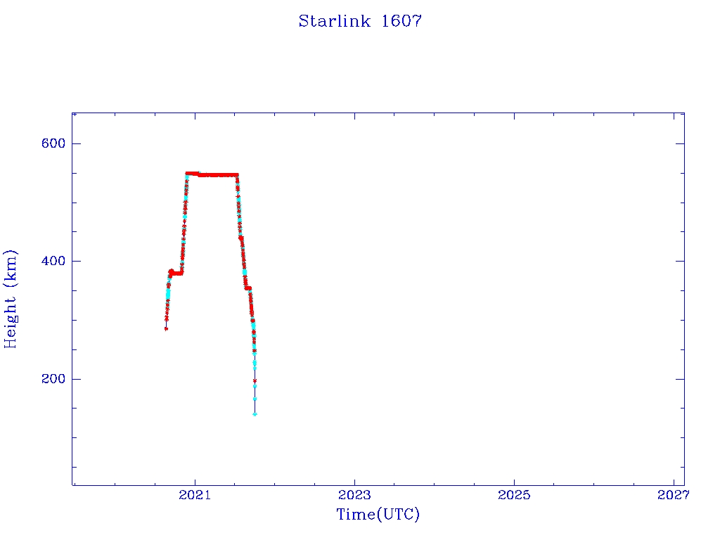 | Starlink 1607 | S46145 | R | 2020 Aug 18 | 2021 Sep 21? | 2021 Sep 30 |  |  |  |