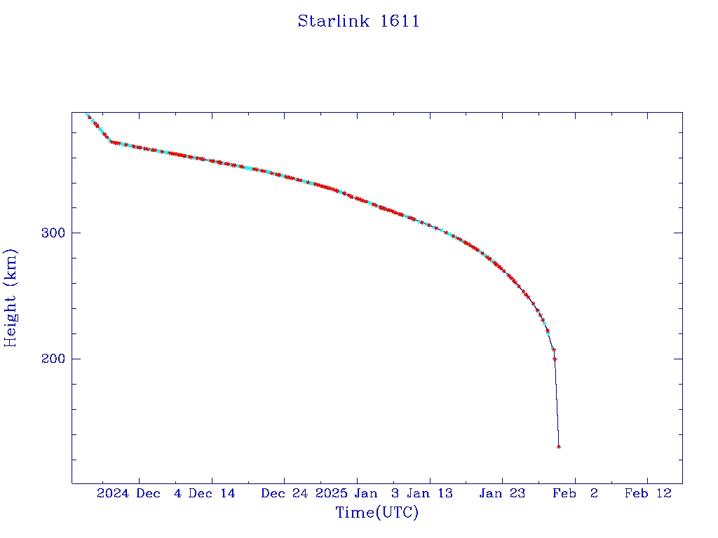 | Starlink 1611 | S46147 | R | 2020 Aug 18 | 2024 Nov 29? | 2025 Jan 30 |  |  |  |