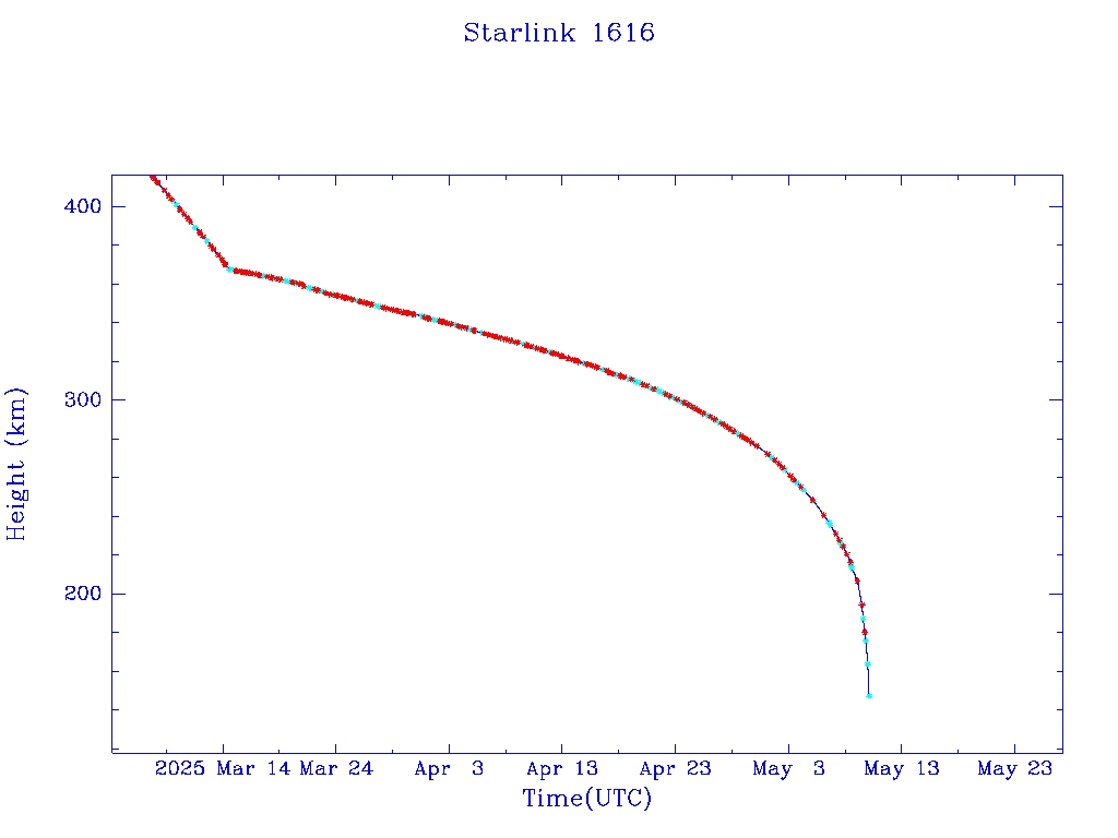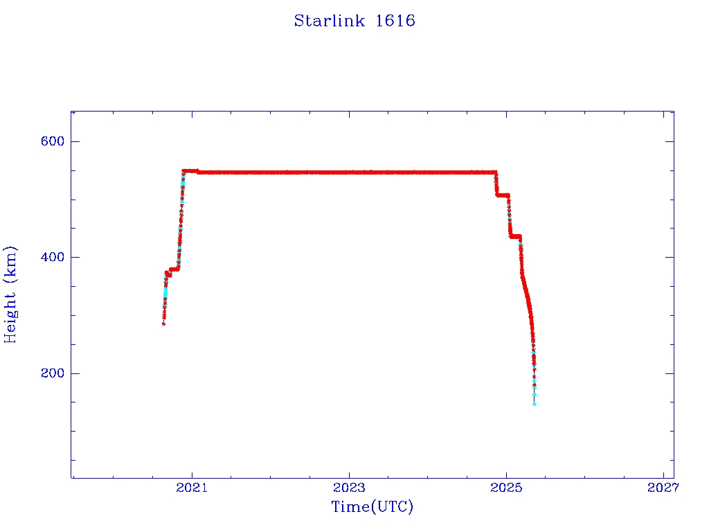 | Starlink 1616 | S46148 | R | 2020 Aug 18 | 2025 Mar 14? | 2025 May 10 |  |  |  |