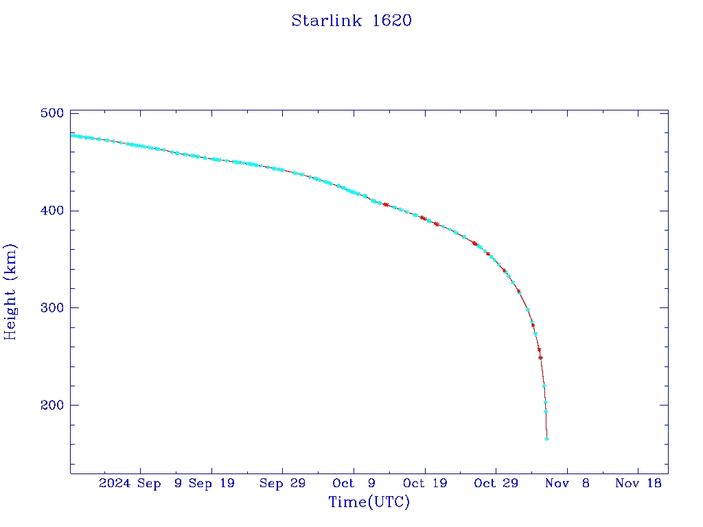| Starlink 1620 | S46149 | M | 2020 Aug 18 | 2024 Mar 18 | 2024 Nov 5 |  |  |  |