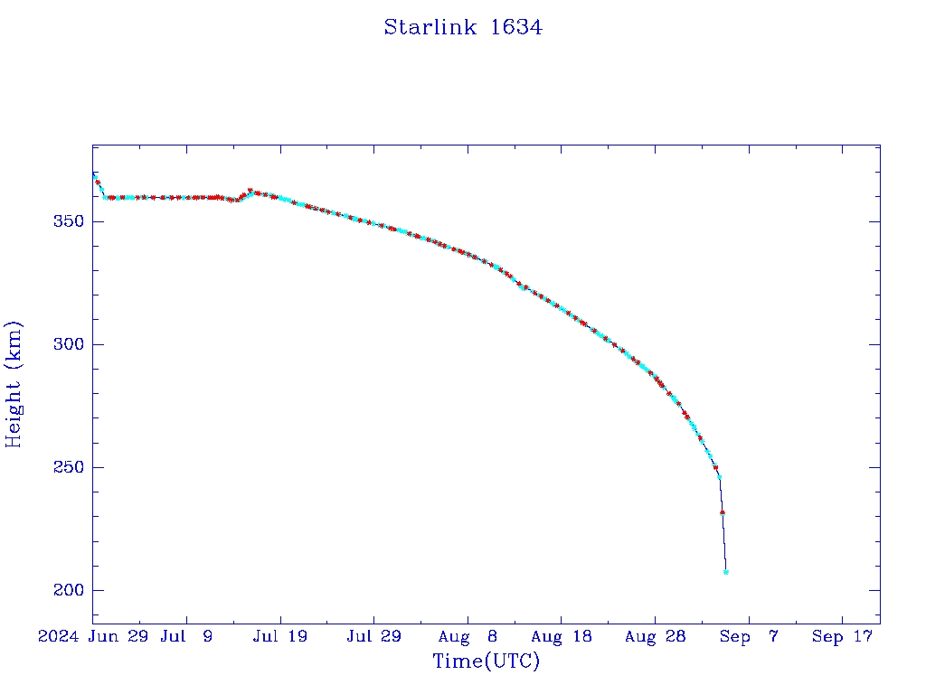 | Starlink 1634 | S46152 | R | 2020 Aug 18 | 2024 Jul 16? | 2024 Sep 4 |  |  |  |