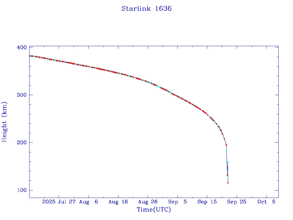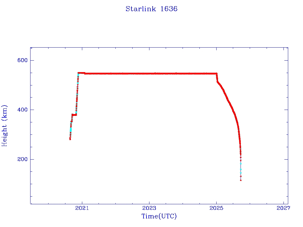 | Starlink 1636 | S46153 | R | 2020 Aug 18 | 2025 Jan 11? | 2025 Sep 22 |  |  |  |