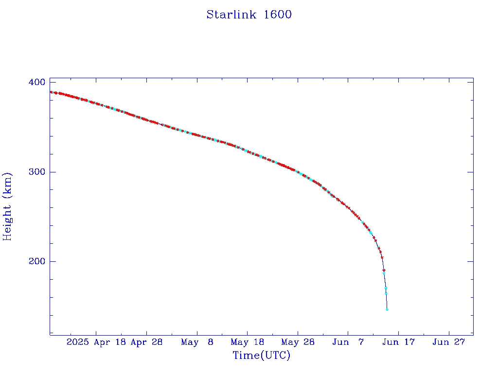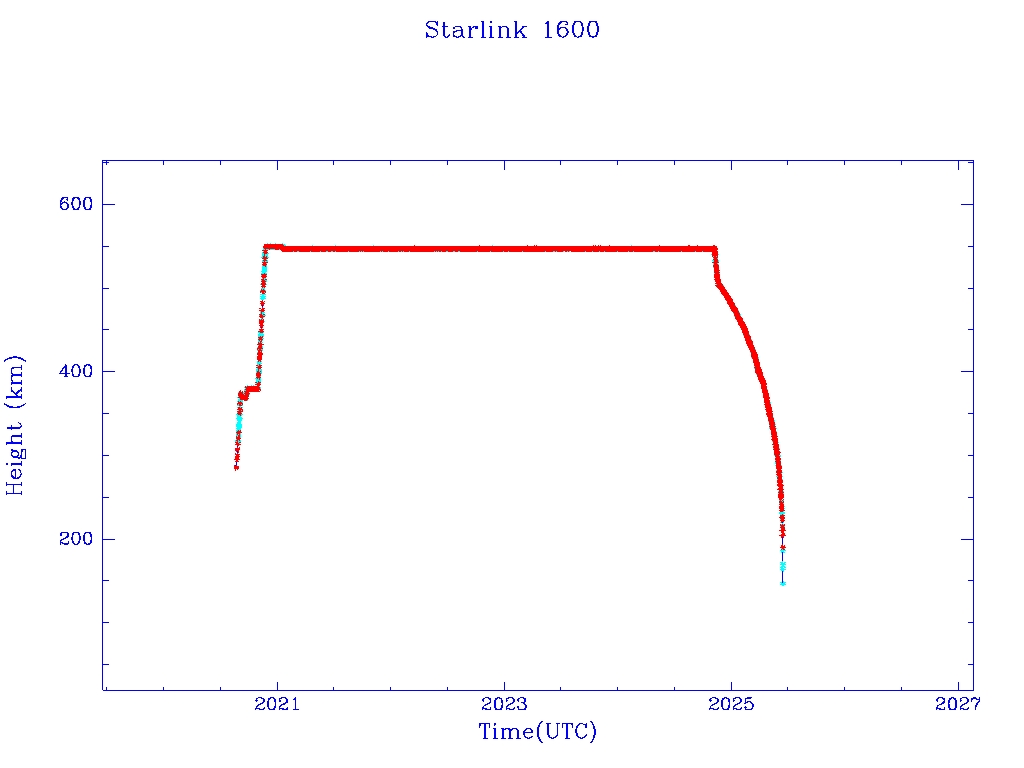 | Starlink 1600 | S46161 | R | 2020 Aug 18 | 2024 Nov 16? | 2025 Jun 14 |  |  |  |