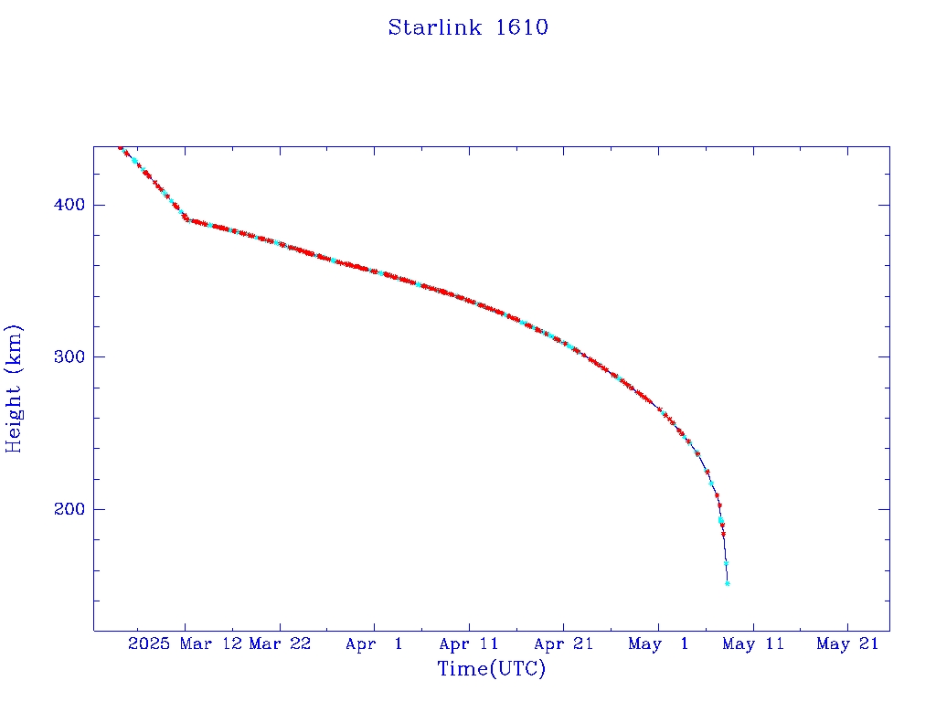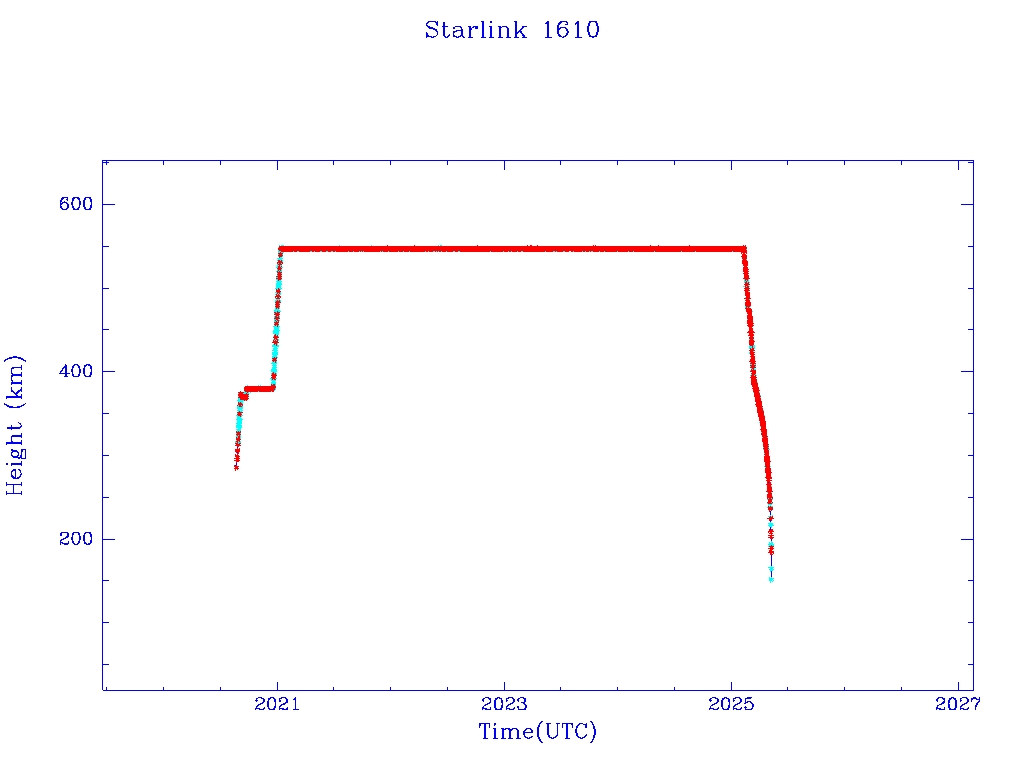 | Starlink 1610 | S46163 | R | 2020 Aug 18 | 2025 Mar 11 | 2025 May 8 |  |  |  |