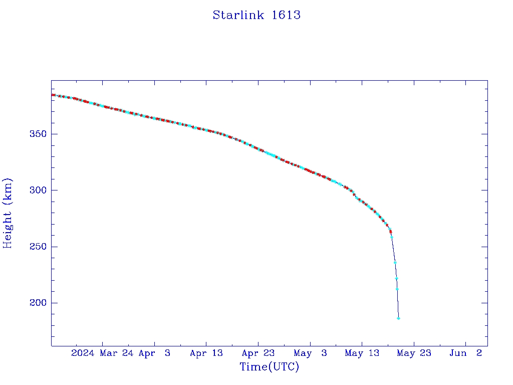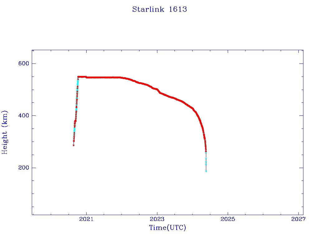 | Starlink 1613 | S46165 | M | 2020 Aug 18 | 2021 Dec 9? | 2024 May 20 |  |  |  |