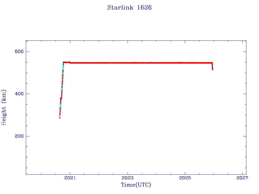 | Starlink 1626 | S46167 | T | 2020 Aug 18 | * | - |  |  |  |
