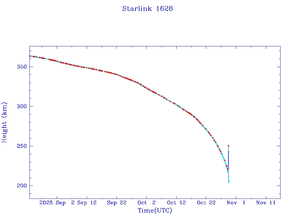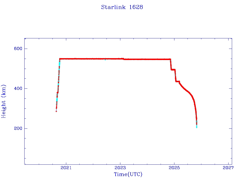 | Starlink 1628 | S46169 | R | 2020 Aug 18 | 2025 Mar 9? | 2025 Oct 29 |  |  |  |