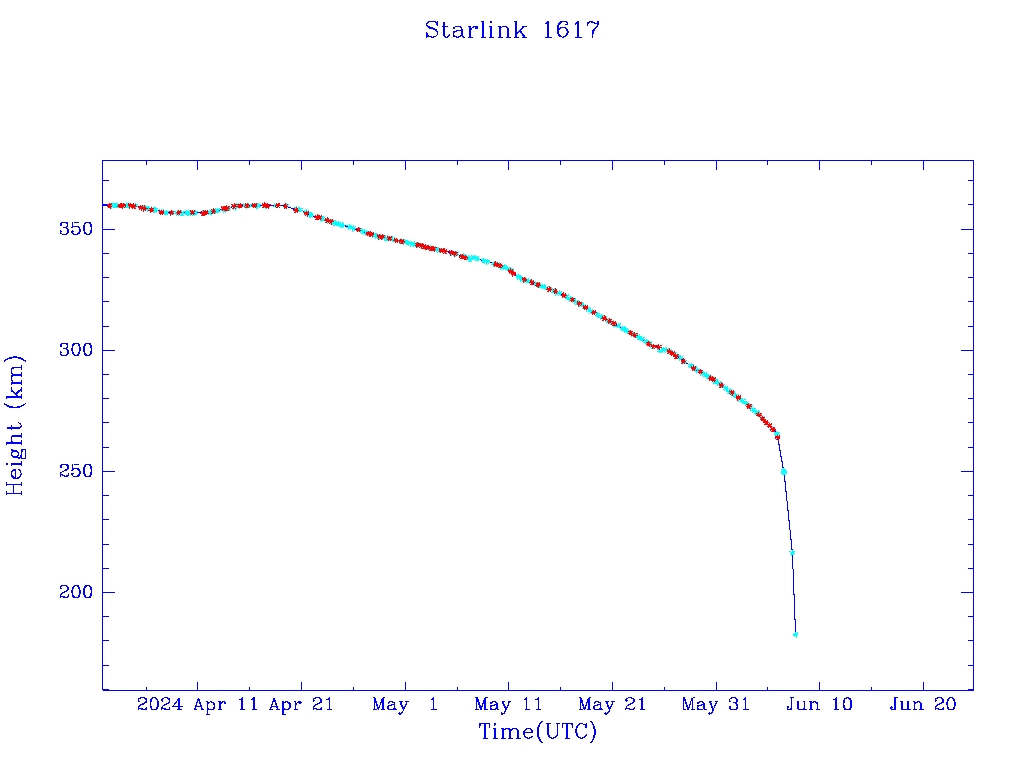 | Starlink 1617 | S46350 | R | 2020 Sep 3 | 2024 Jun 6 | 2024 Jun 7 |  |  |  |