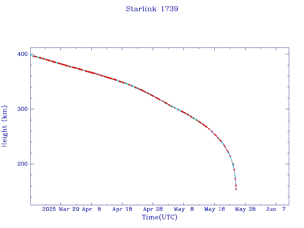 | Starlink 1739 | S46363 | R | 2020 Sep 3 | 2025 Feb 10? | 2025 May 25 |  |  |  |