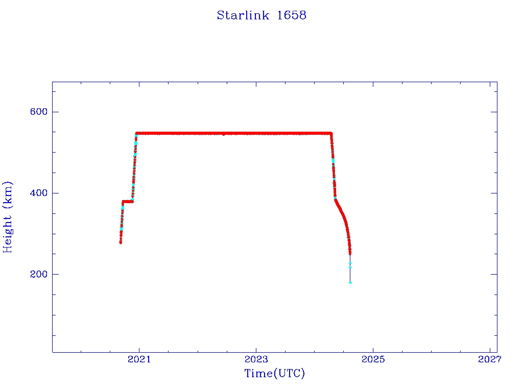 | Starlink 1658 | S46368 | R | 2020 Sep 3 | 2024 May 8? | 2024 Aug 10 |  |  |  |