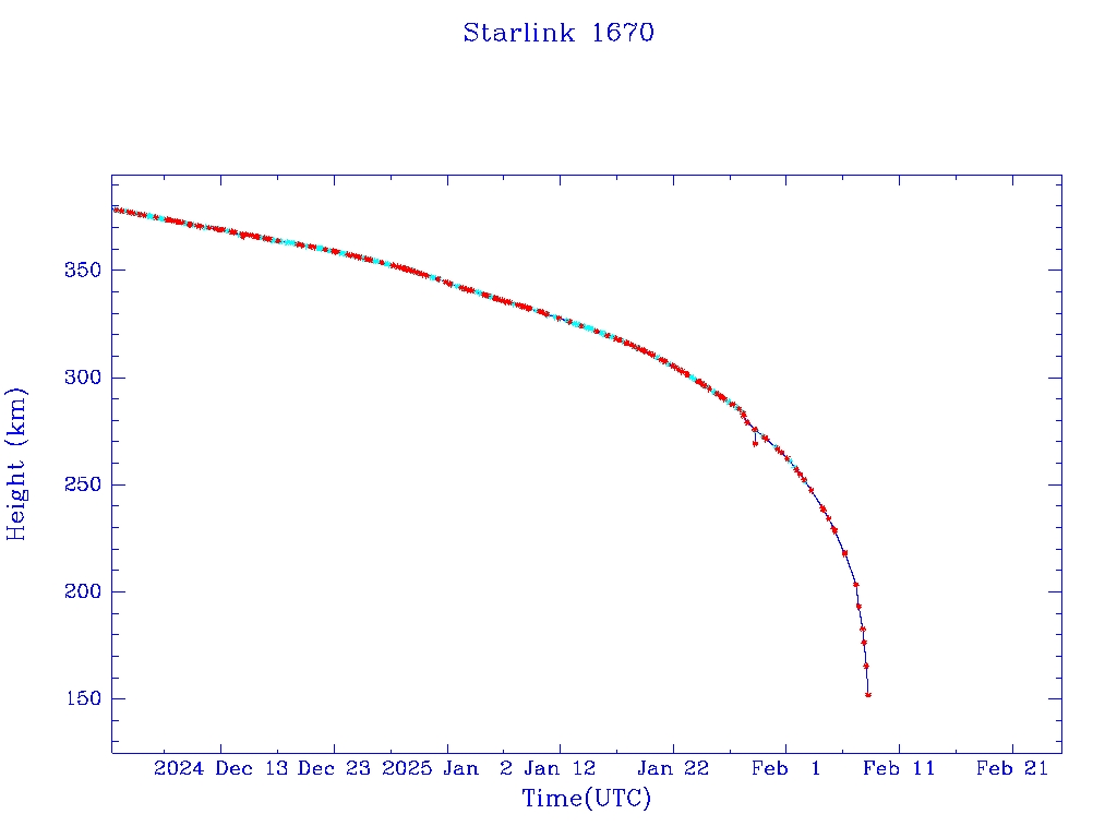| Starlink 1670 | S46370 | R | 2020 Sep 3 | 2024 Nov 16 | 2025 Feb 8 |  |  |  |