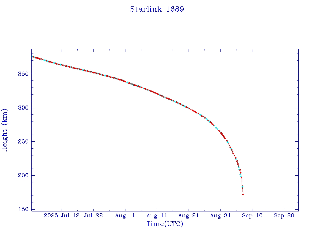 | Starlink 1689 | S46372 | M | 2020 Sep 3 | 2024 Jul 19? | 2025 Sep 7 |  |  |  |