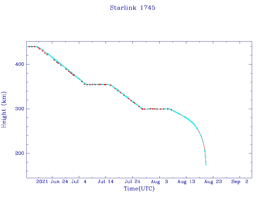 | Starlink 1745 | S46377 | R | 2020 Sep 3 | 2021 Aug 7 | 2021 Aug 20 |  |  |  |