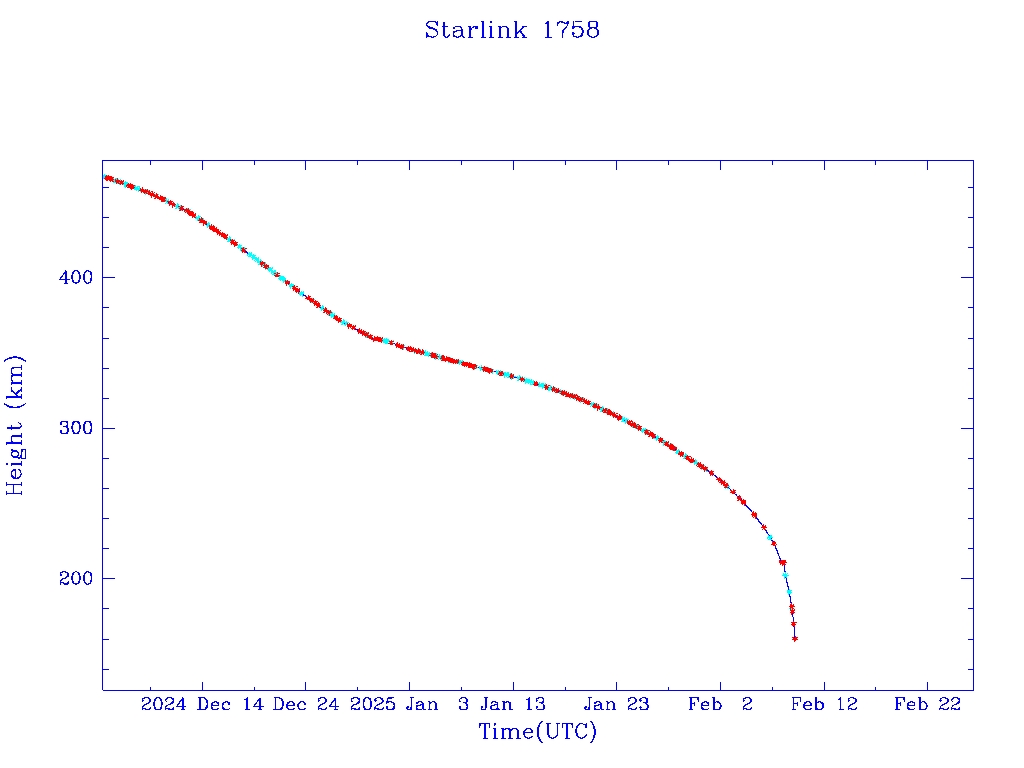 | Starlink 1758 | S46380 | R | 2020 Sep 3 | 2024 Dec 29? | 2025 Feb 9 |  |  |  |