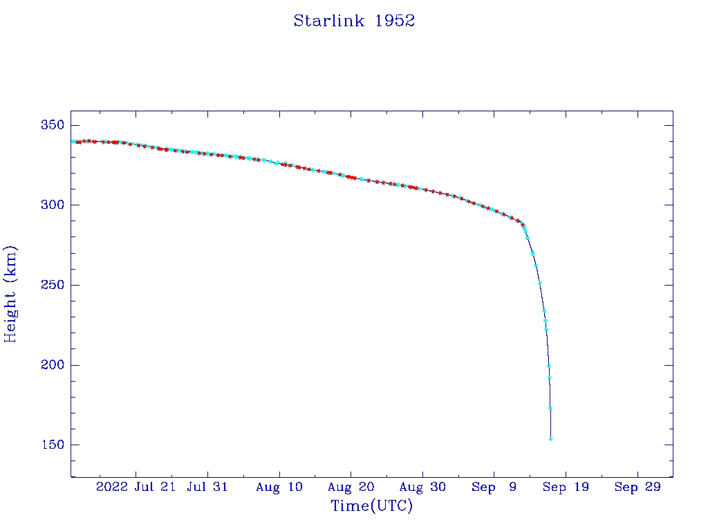 | Starlink 1952 | S47349 | R | 2021 Jan 20 | 2022 Sep 13 | 2022 Sep 16 |  |  |  |