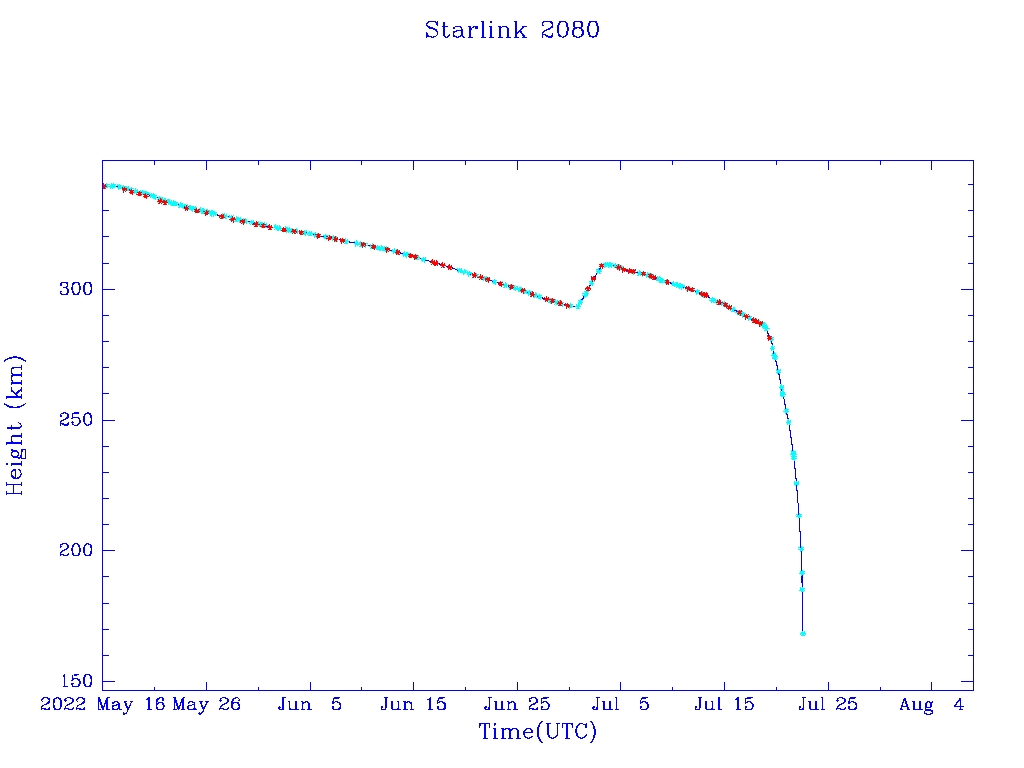 | Starlink 2080 | S47365 | R | 2021 Jan 20 | 2022 Jul 18 | 2022 Jul 22 |  |  |  |