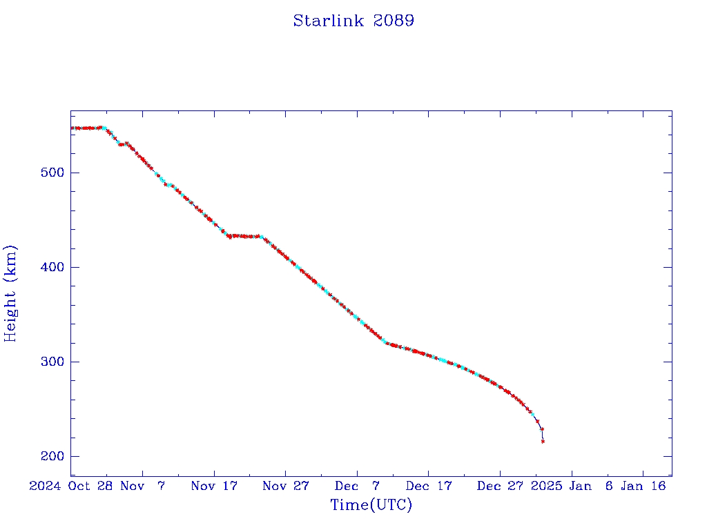 | Starlink 2089 | S47372 | R | 2021 Jan 20 | 2024 Dec 11? | 2025 Jan 3 |  |  |  |