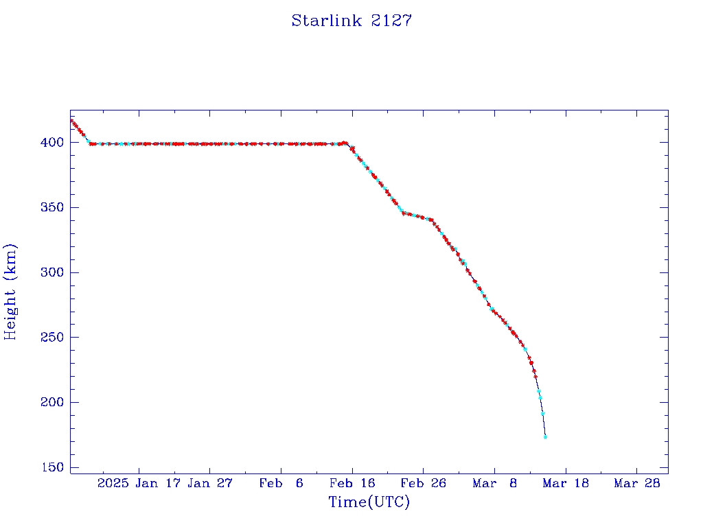 | Starlink 2127 | S47403 | R | 2021 Jan 20 | 2025 Mar 9? | 2025 Mar 15 |  |  |  |