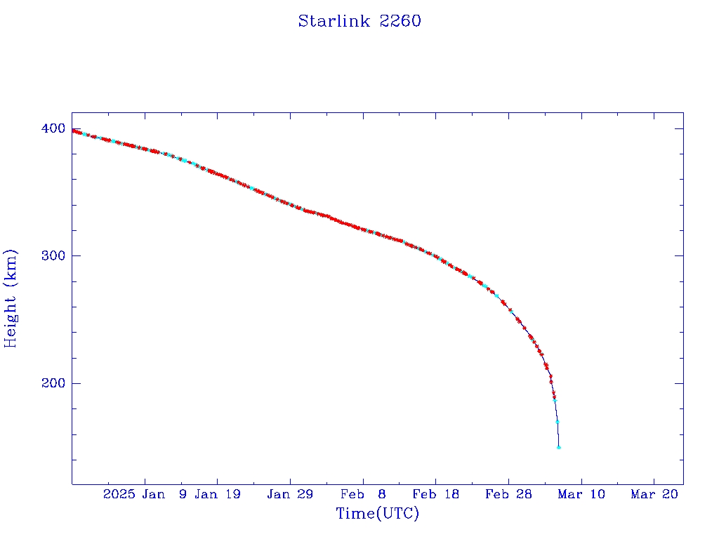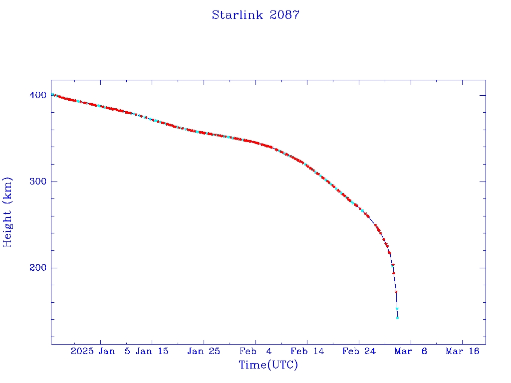 | Starlink 2087 | S47977 | R | 2021 Mar 24 | 2025 Feb 21? | 2025 Mar 3 |  |  |  |