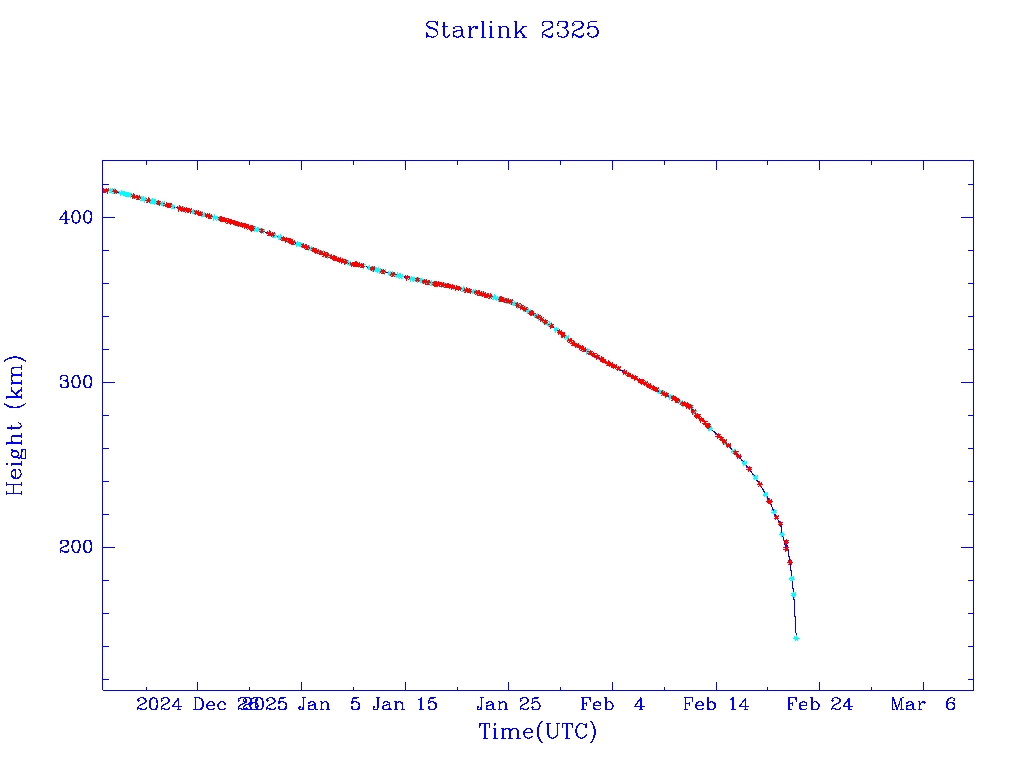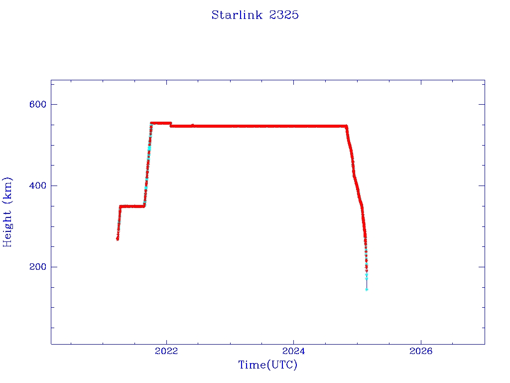 | Starlink 2325 | S47979 | R | 2021 Mar 24 | 2025 Feb 11? | 2025 Feb 21 |  |  |  |