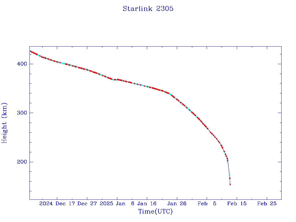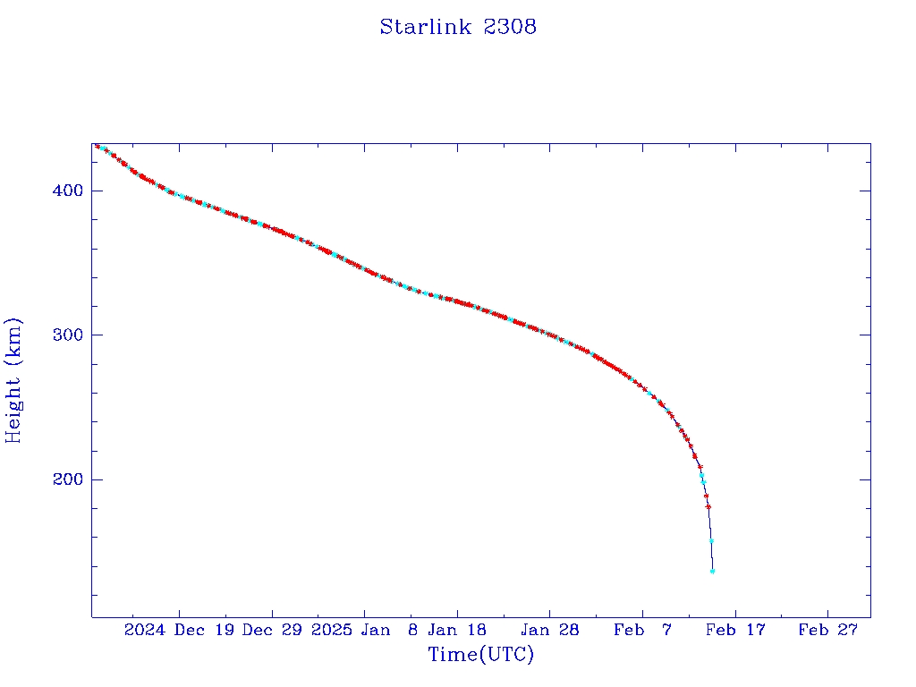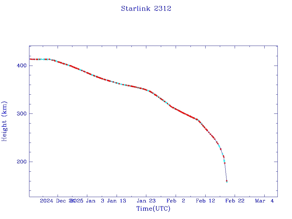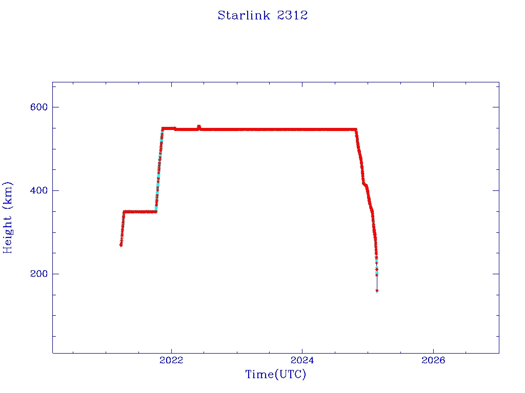 | Starlink 2312 | S47980 | R | 2021 Mar 24 | 2025 Feb 9? | 2025 Feb 19 |  |  |  |