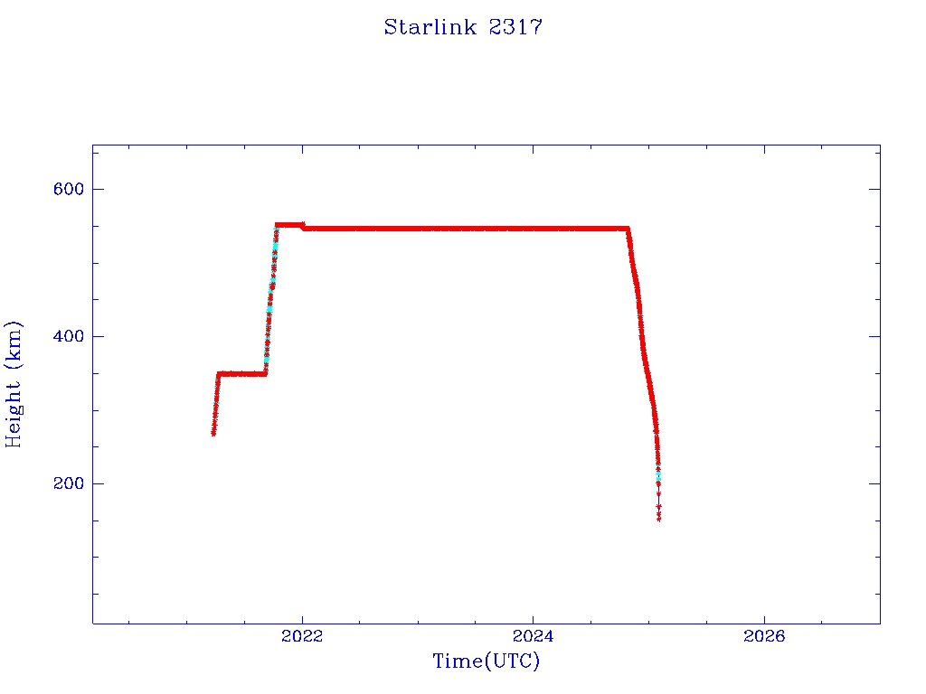 | Starlink 2317 | S47982 | R | 2021 Mar 24 | 2025 Jan 1? | 2025 Jan 31 |  |  |  |