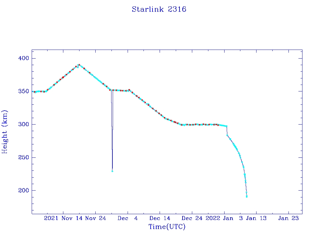 | Starlink 2316 | S47984 | F | 2021 Mar 24 | 2022 Jan 4 | 2022 Jan 10 |  |  |  |