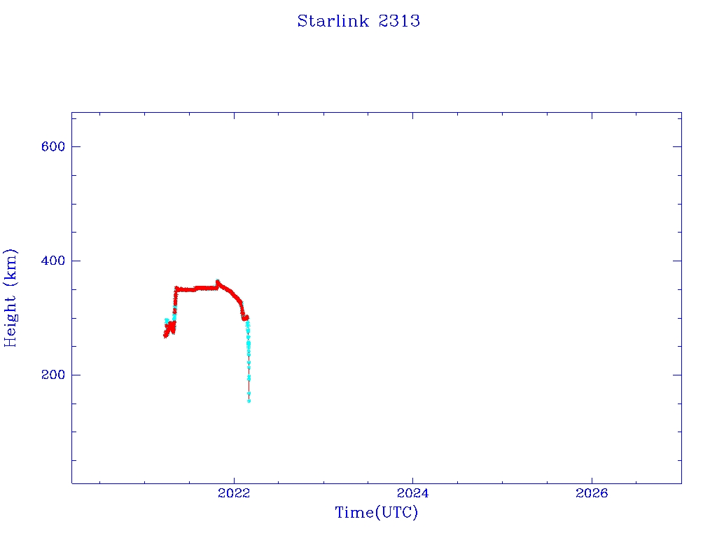 | Starlink 2313 | S47986 | F | 2021 Mar 24 | 2022 Feb 24 | 2022 Mar 2 |  |  |  |