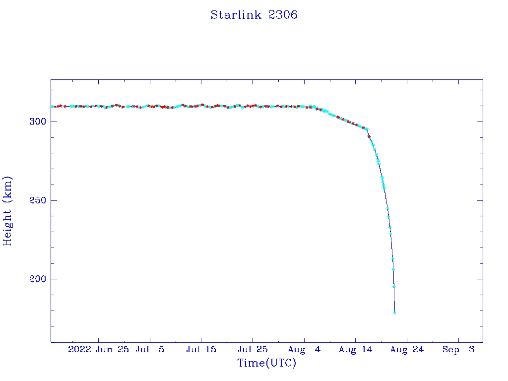 | Starlink 2306 | S47988 | R | 2021 Mar 24 | 2022 Aug 16 | 2022 Aug 21 |  |  |  |