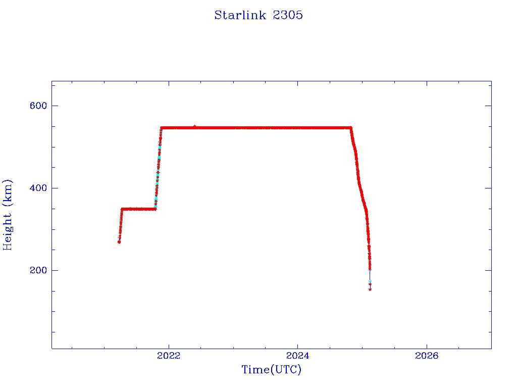 | Starlink 2305 | S47989 | R | 2021 Mar 24 | 2025 Jan 5? | 2025 Feb 12 |  |  |  |
