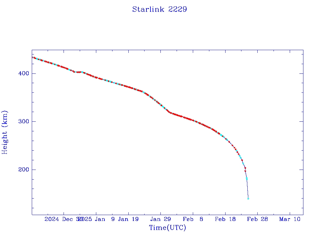 | Starlink 2229 | S47992 | R | 2021 Mar 24 | 2025 Jan 31? | 2025 Feb 25 |  |  |  |