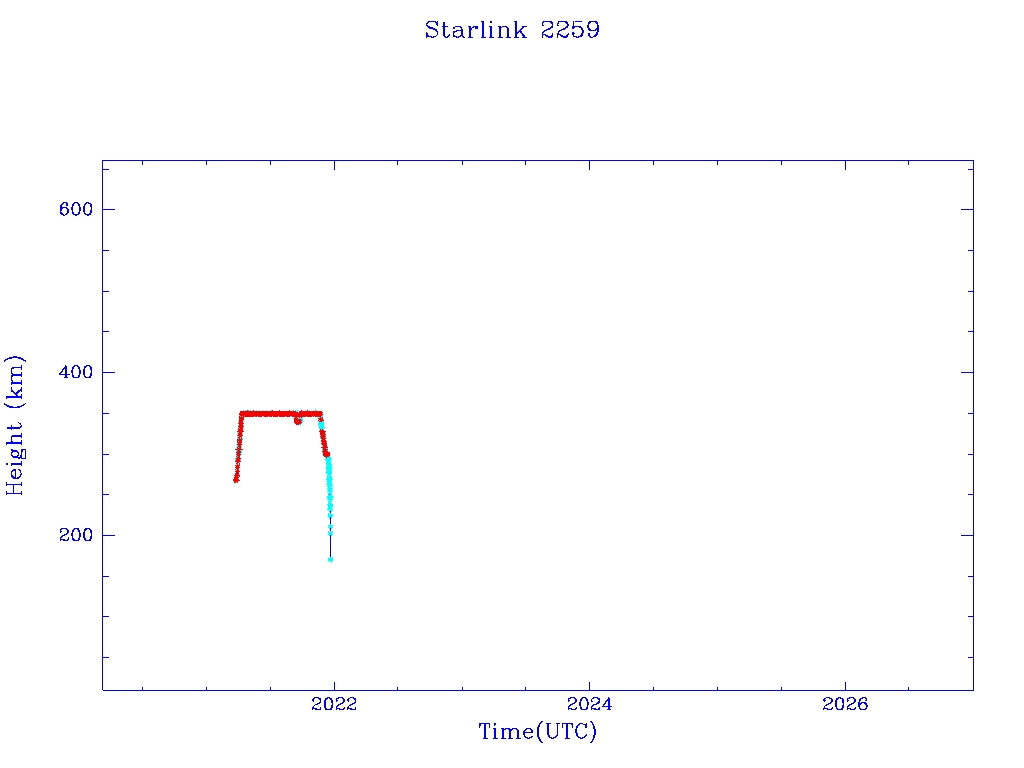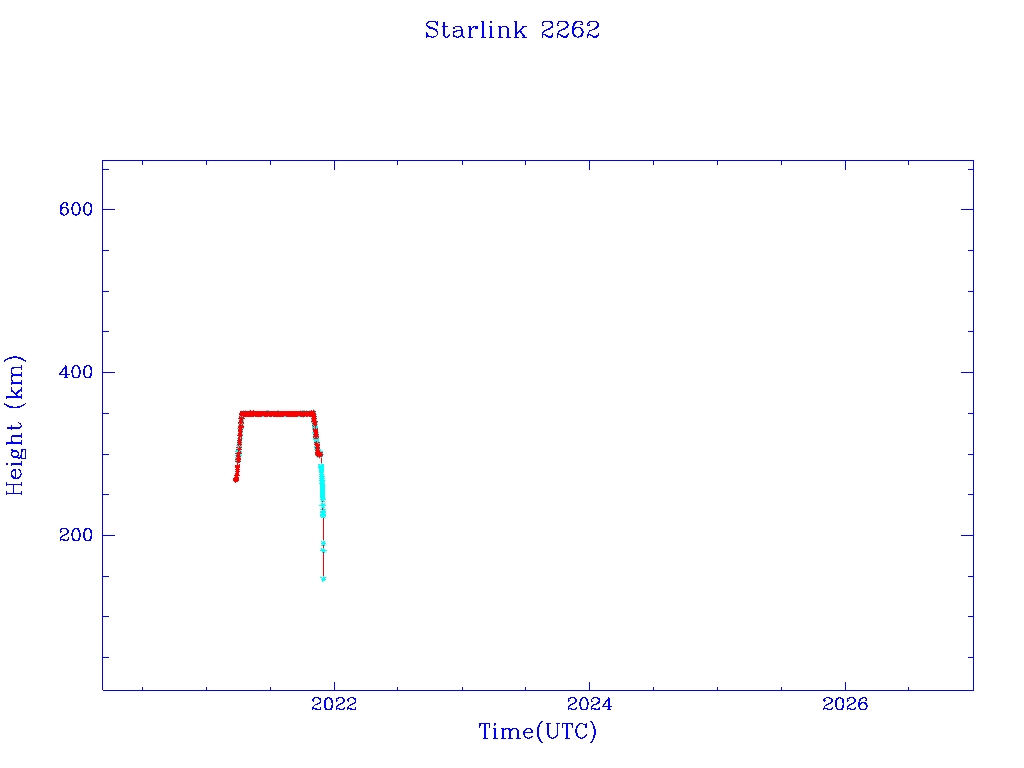 | Starlink 2297 | S48032 | F | 2021 Mar 24 | 2022 Jan 3 | 2022 Jan 10 |  |  |  |