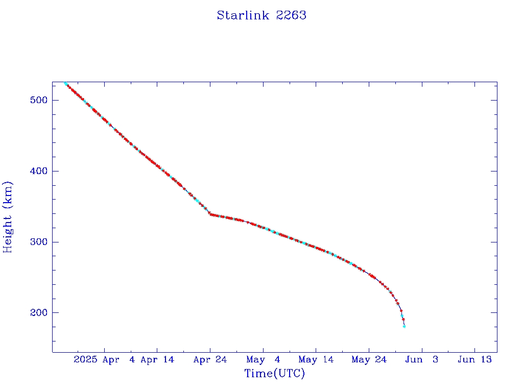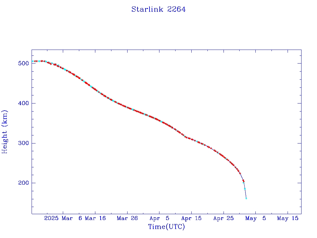 | Starlink 2264 | S48028 | R | 2021 Mar 24 | 2025 Apr 12? | 2025 May 2 |  |  |  |
