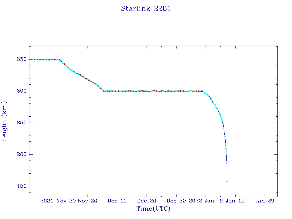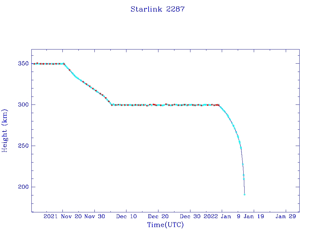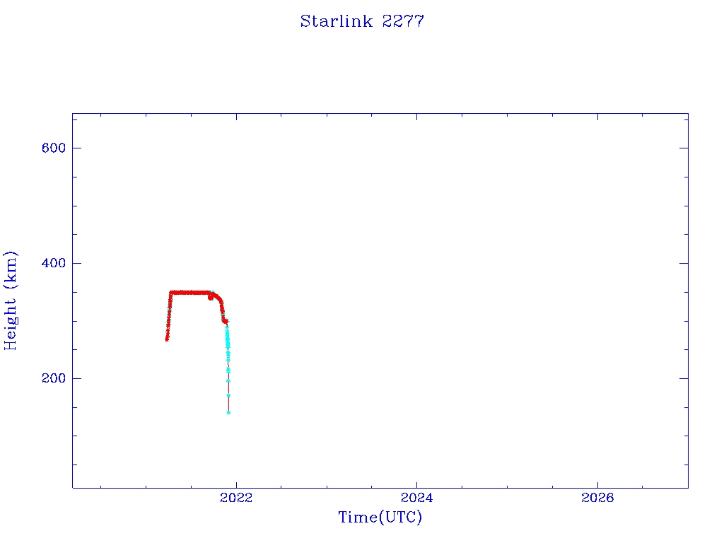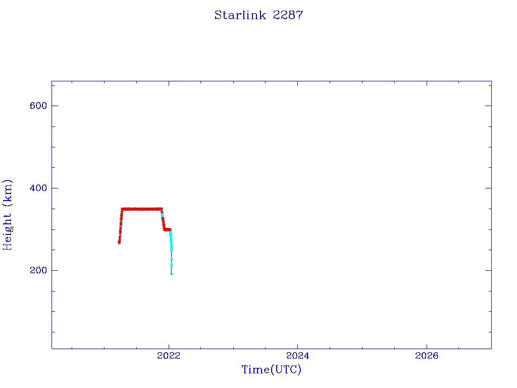 | Starlink 2287 | S48035 | F | 2021 Mar 24 | 2022 Jan 11 | 2022 Jan 16 |  |  |  |