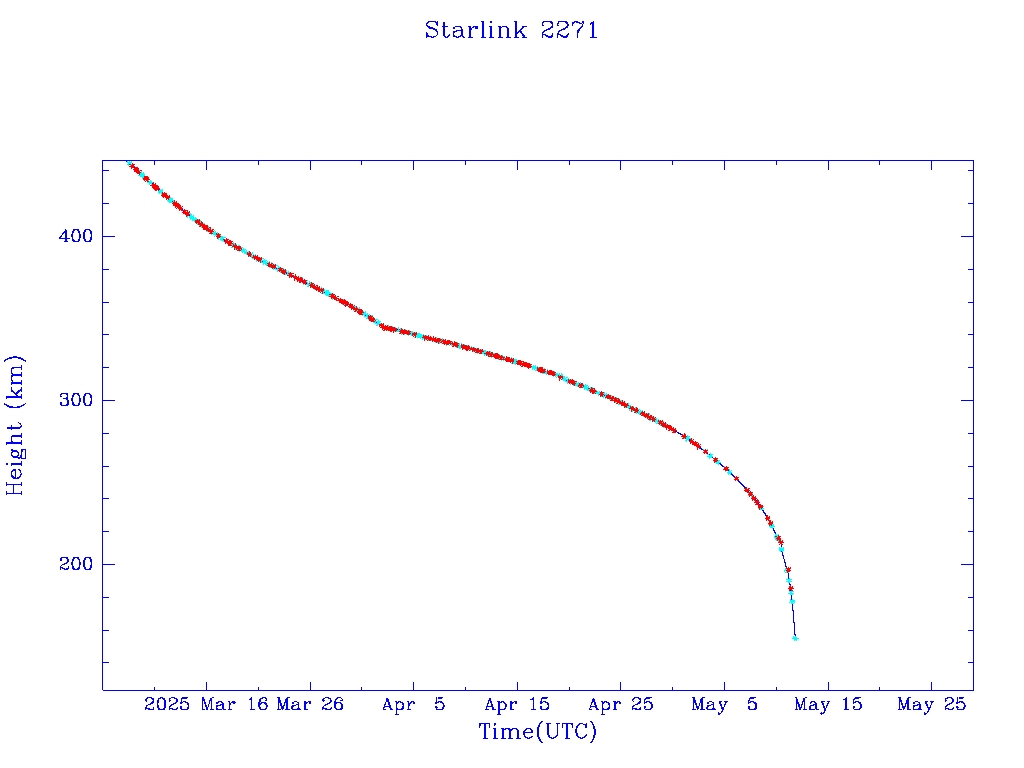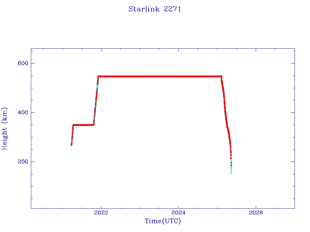 | Starlink 2271 | S48008 | R | 2021 Mar 24 | 2025 Apr 2 | 2025 May 12 |  |  |  |