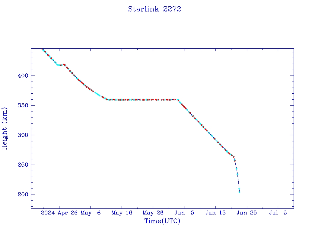 | Starlink 2272 | S48011 | R | 2021 Mar 24 | 2024 Jun 20 | 2024 Jun 22 |  |  |  |