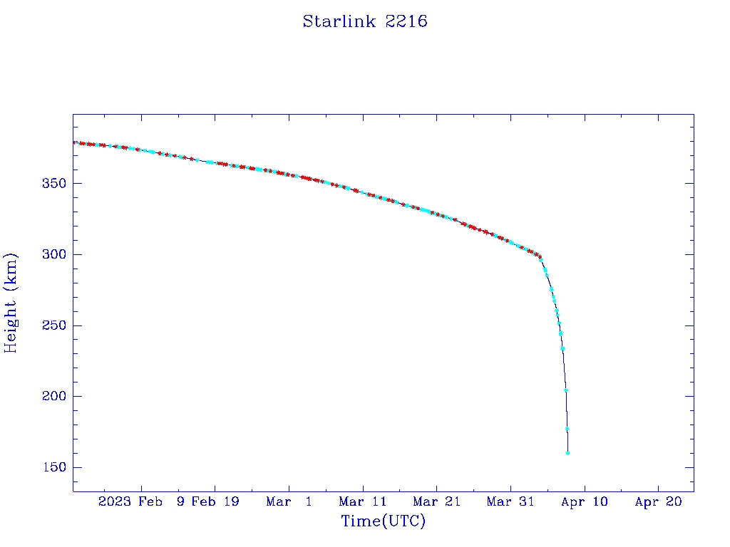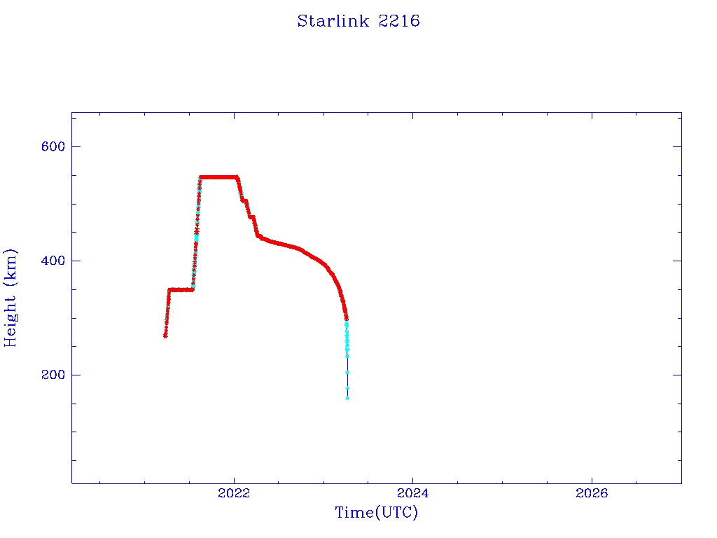 | Starlink 2216 | S48012 | R | 2021 Mar 24 | 2023 Apr 4 | 2023 Apr 7 |  |  |  |