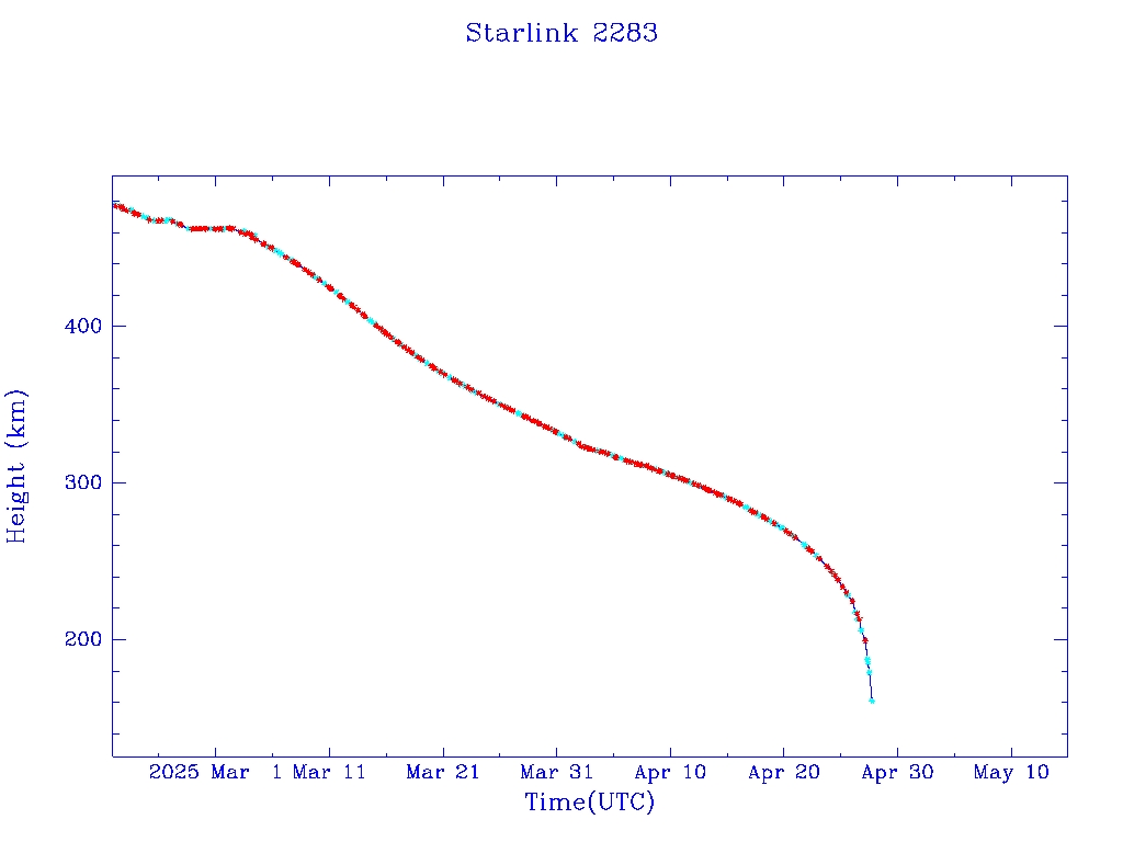 | Starlink 2283 | S48014 | R | 2021 Mar 24 | 2025 Mar 3? | 2025 Apr 27 |  |  |  |
