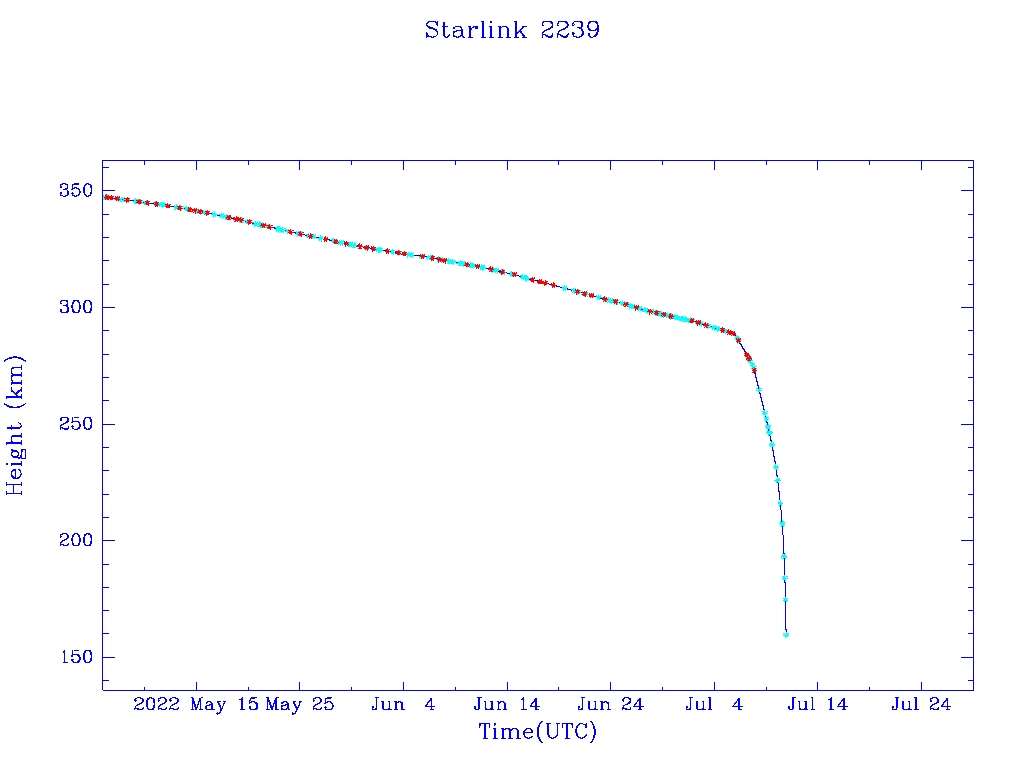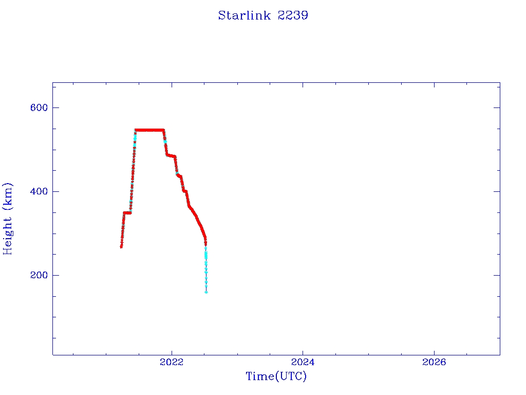 | Starlink 2239 | S48017 | R | 2021 Mar 24 | 2022 Jul 5 | 2022 Jul 11 |  |  |  |