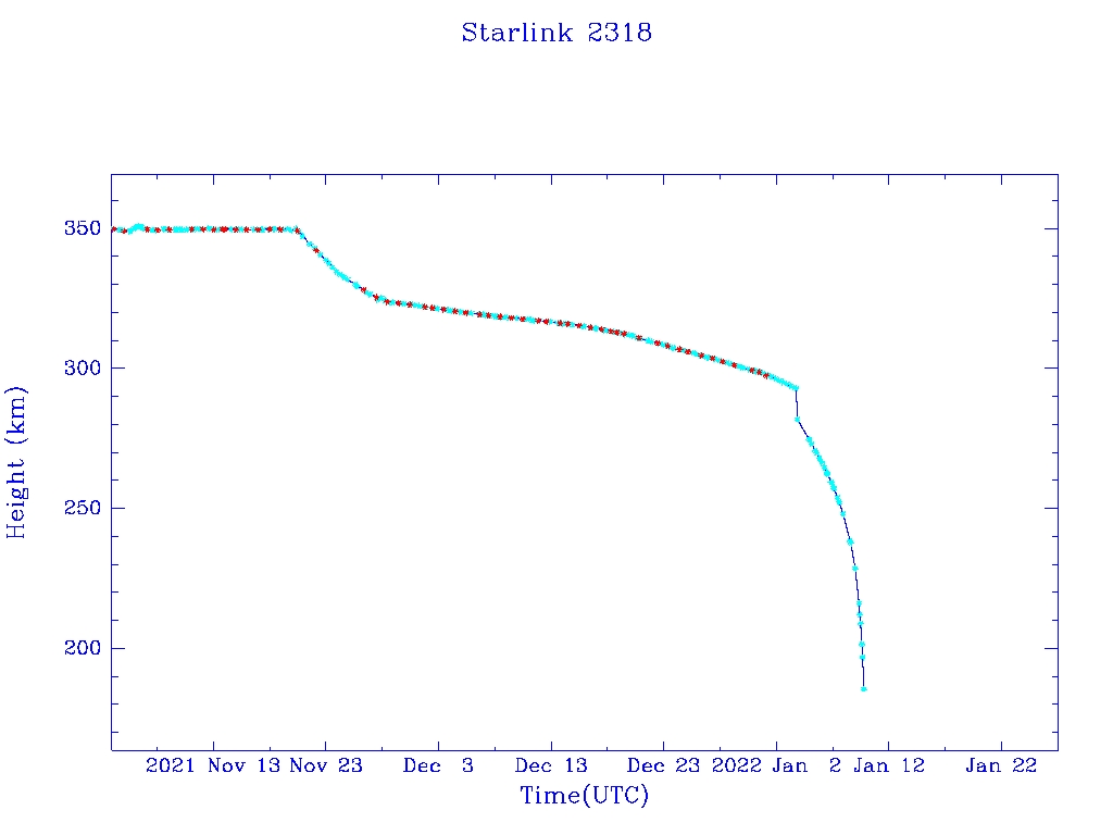 | Starlink 2318 | S48025 | F | 2021 Mar 24 | 2022 Jan 3 | 2022 Jan 9 |  |  |  |