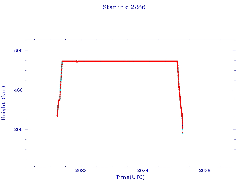 | Starlink 2286 | S48033 | R | 2021 Mar 24 | 2025 Mar 20? | 2025 Apr 14 |  |  |  |