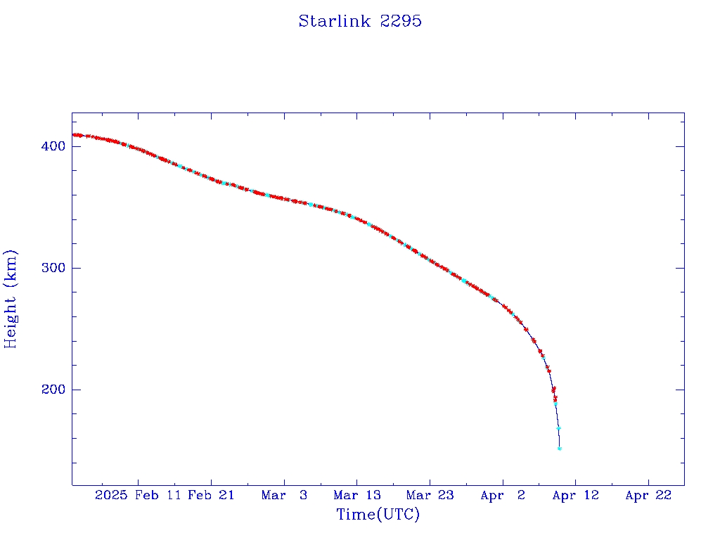 | Starlink 2295 | S48036 | R | 2021 Mar 24 | 2025 Mar 7? | 2025 Apr 9 |  |  |  |