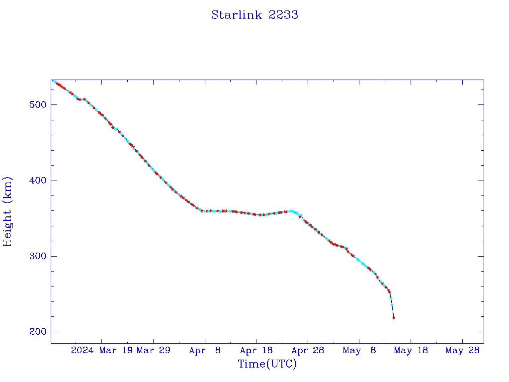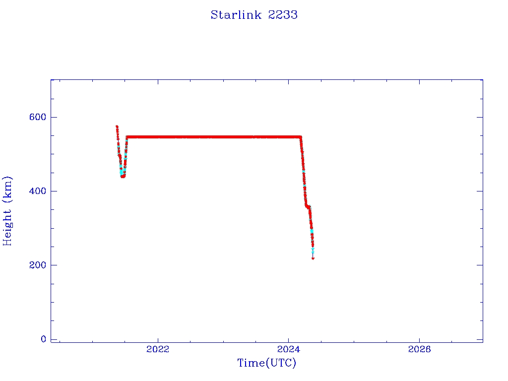 | Starlink 2233 | S48579 | R | 2021 May 15 | 2024 May 13 | 2024 May 15 |  |  |  |
