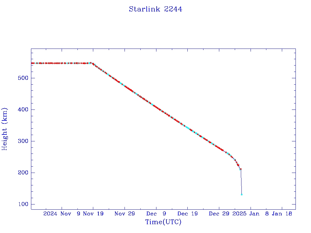 | Starlink 2244 | S48588 | R | 2021 May 15 | 2025 Jan 1? | 2025 Jan 5 |  |  |  |