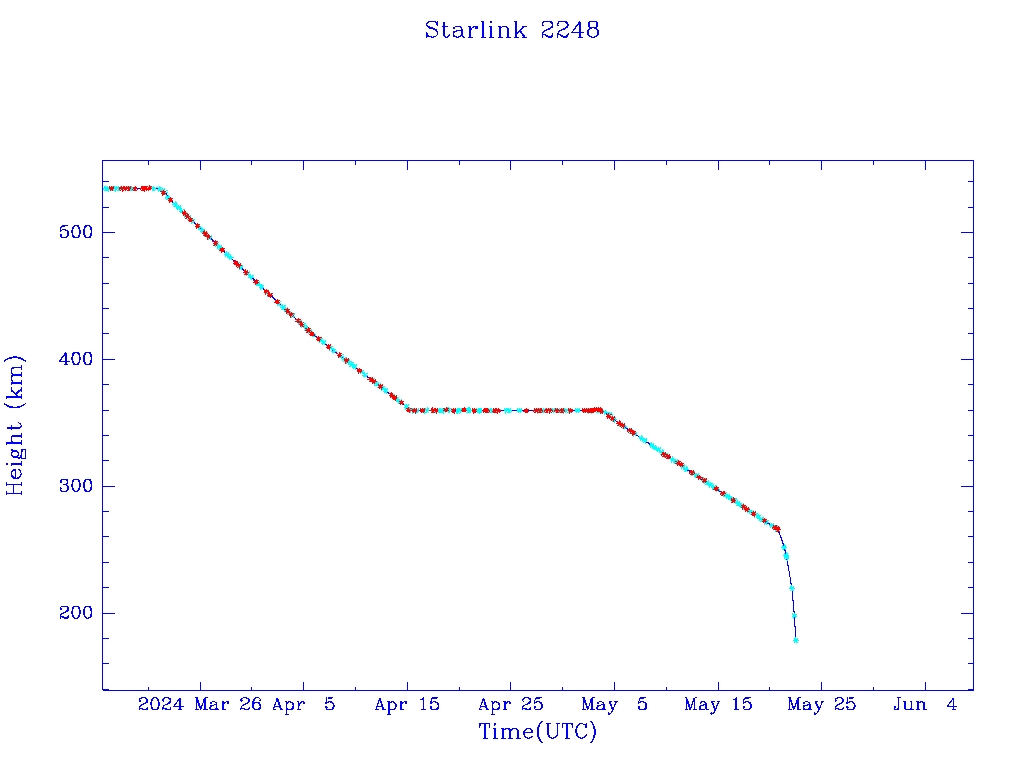 | Starlink 2248 | S48591 | R | 2021 May 15 | 2024 May 21 | 2024 May 22 |  |  |  |