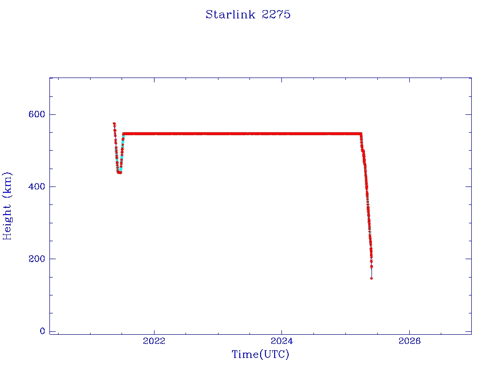 | Starlink 2275 | S48600 | R | 2021 May 15 | 2025 May 18? | 2025 May 27 |  |  |  |