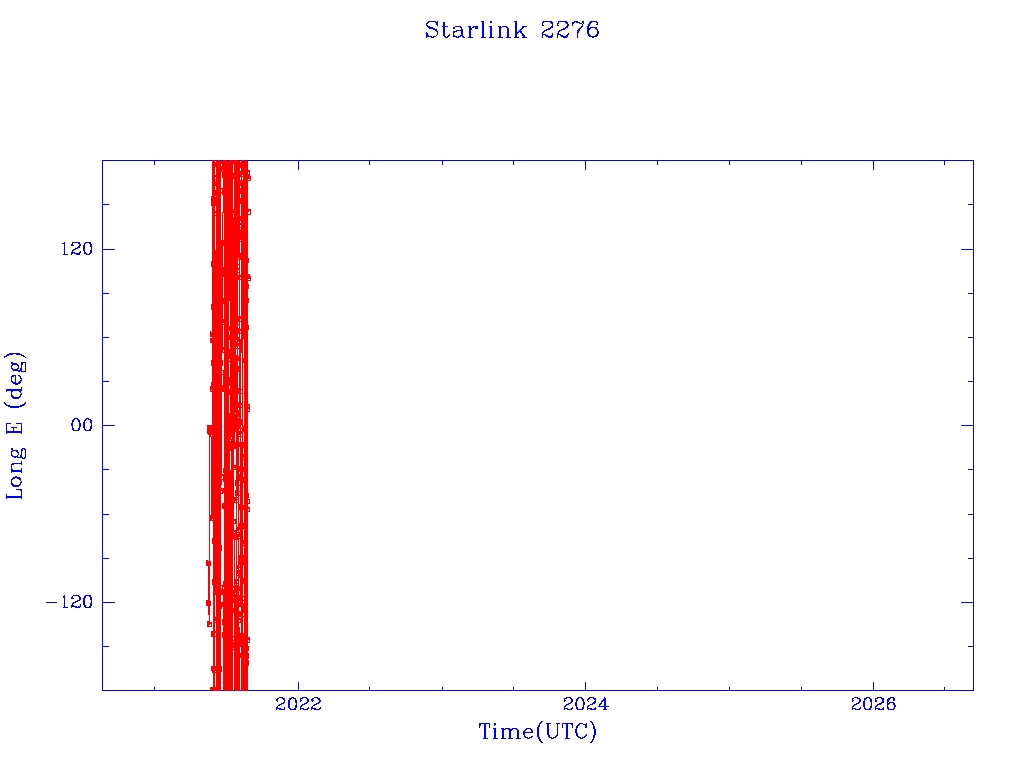 | Starlink 2276 | S48601 | F | 2021 May 15 | 2021 Aug 12? | 2021 Aug 25 |  |  |  |