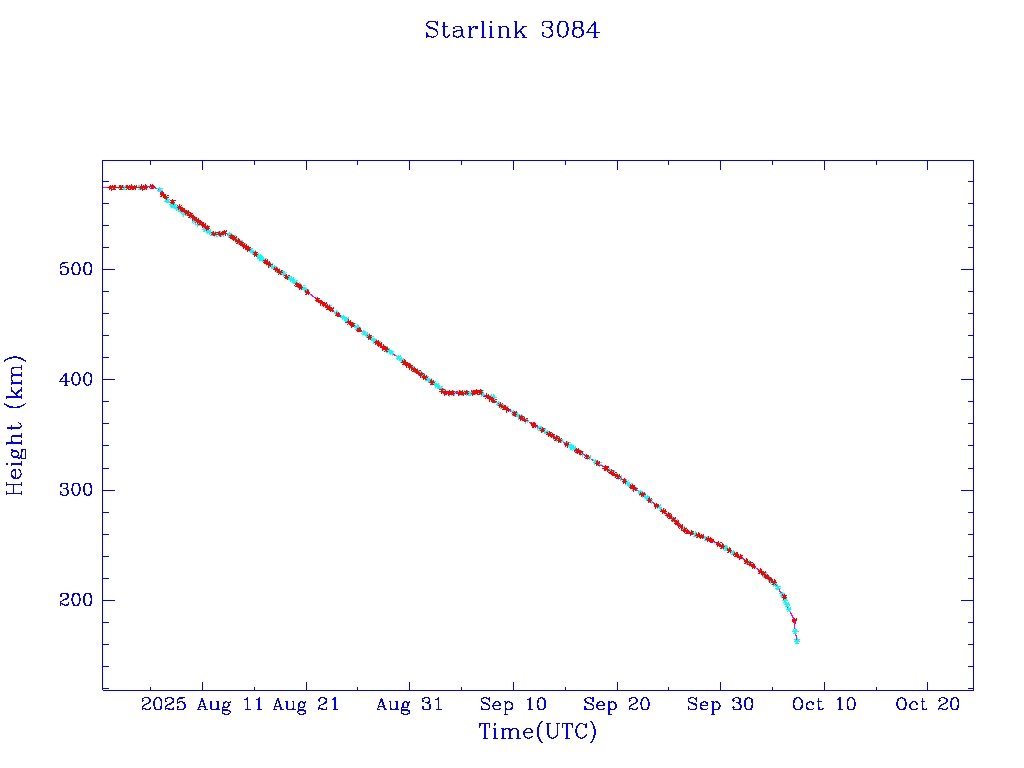 | Starlink 3084 | S49136 | R | 2021 Sep 14 | 2025 Sep 26? | 2025 Oct 7 |  |  |  |