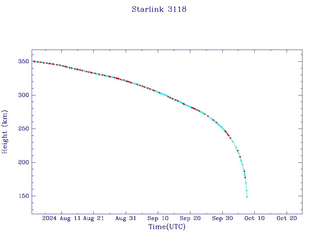 | Starlink 3118 | S49140 | R | 2021 Sep 14 | 2024 Jul 16? | 2024 Oct 7 |  |  |  |